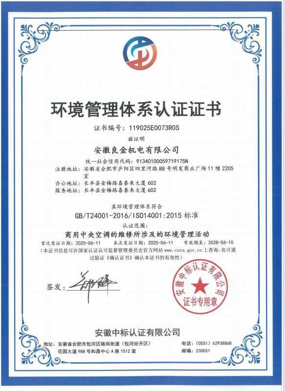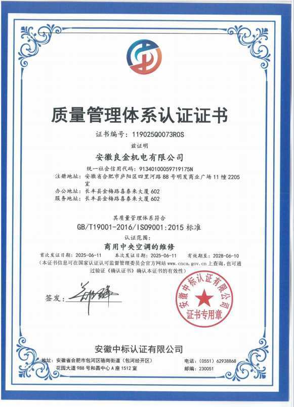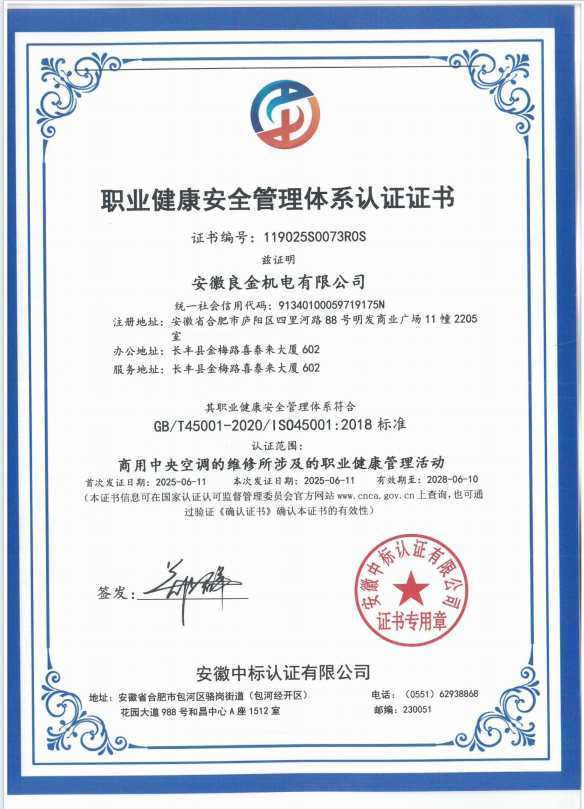 安徽良金机电有限公司成立于2012年,注册资金500万元。集中式中央空调清洗维修国家一级资质企业;二次供水清洗检测国家一级资质企业;国家级AAA信用企业。公司主要技术人员拥有20多年从业经验,公司现涉及业务有:中央空调、冷却水塔、水箱的销售安装及售后维保服务。承接暖通水电工程设计安装,各种中央空调成套设备维修保养、工业设备循环水处理、管道清洗钝化、风管机器人清洗、工业设备化学清洗,民用二次供水清洗消杀服务;承接全国范围水处理、空调年度维保、风管清洗及冷却水塔维修改造及更新、变频器及弱电业务。客户涉及酒店、商场、工厂、医院、办公楼等大型中央空调系统,锅炉、炼钢炉、空压机等工业设备的化学清洗及水处理工程。现拥有滁州喜来登大酒店、明珠国际大酒店、银泰君亭酒店、威斯汀酒店、北城世纪金源大饭店、北城购物中心、滨湖世纪金源大饭店、中环中心、ABB、万达集团、美的集团、江淮集团、源牌集团、佳通轮胎、统一企业、沃尔玛超市、亳州盖圣祥超市、六安人民医院、合肥妇幼保健院、德国库尔兹压烫科技、加拿大丝艾包装(合肥)有限公司、比利时禄思伟矿产资源(安徽)有限公司、联合利华、美的冰箱、美芝制冷设备、保利物业、安徽广播电视信息中心、浦发银行合肥综合中心、安徽省移动、南翔集团、安徽金大地、天珑广场、红星美凯龙、弘阳集团、龙湖地产等一大批固定客户。并连续成为约克中国供应商,为约克提供中央空调、化学清洗及水处理方面技术服务支持。公司技术力量雄厚,主要技术人员有着多年的从业经验,独有的水处理配方,强有力的技术支持,为客户提供更安全更可靠优质服务。同时公司特聘国内环保、水处理技术专家为公司提供技术指导,拥有独立的水处理实验室。公司在工程承包上实行强强联合,组成一支规模强大、实力雄厚的专业施工团队,为客户提供优质高效的全方位服务。提供各品牌原厂配件。